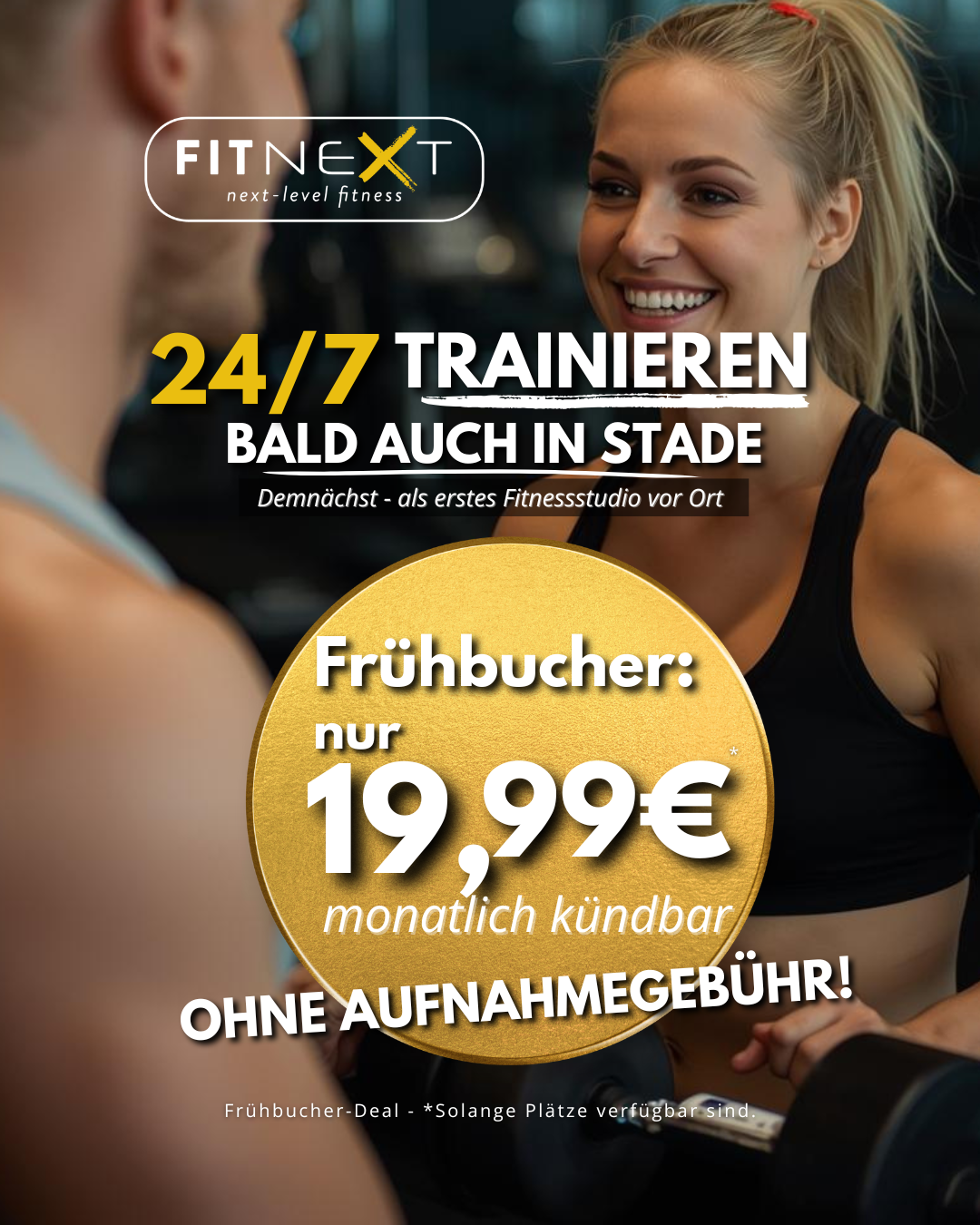 Entdecke das FITNEXT Stade – dein neues Zuhause für Fitness und Gesundheit! Auf über 1500 m² bieten wir dir hochwertige Fitnessgeräte, kompetente Berater und eine motivierende Gemeinschaft. Dank unserer fortschrittlichen, KI-basierten Trainingsplanerstellung erhältst du einen individuell auf dich zugeschnittenen Plan, der sich flexibel an deine Fortschritte anpasst – und das in einem der ersten Studios, die diese Innovation bieten.